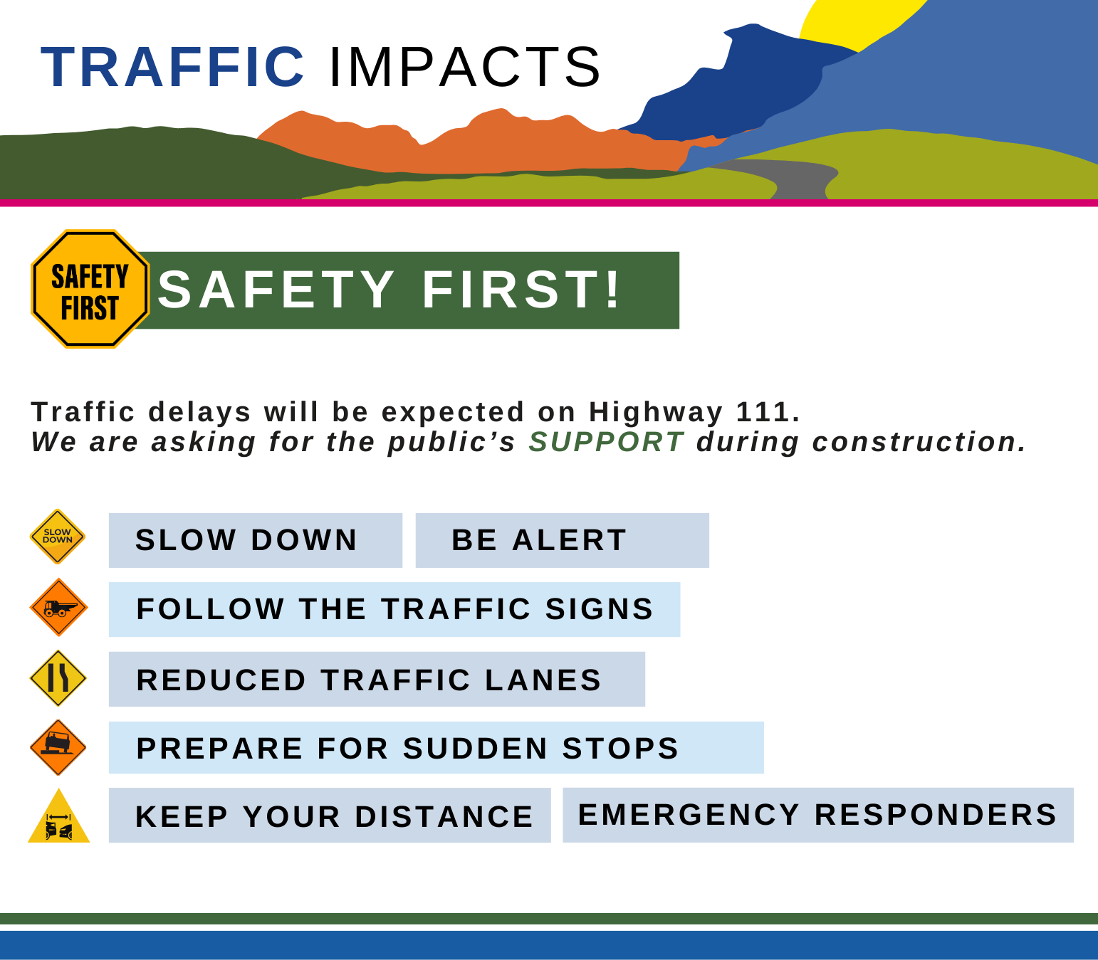 While construction can be unpredictable, there are several steps you can take as a driver to navigate Highway 111 safely.